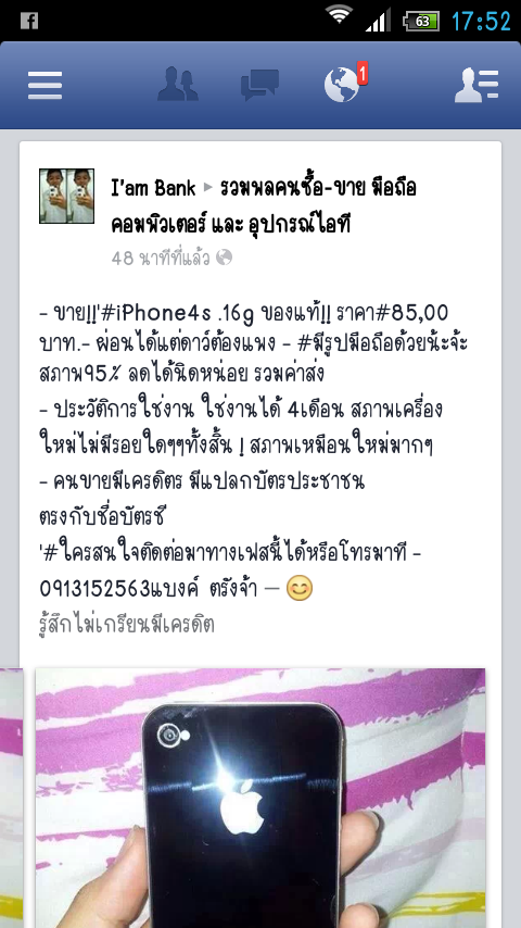คราวนี้เป็นเด็กเกรียน หลอกขาย i phone 4s 16GB ราคา 8500 บาท แต่มีข้อแม้ว่า ต้องดาว์นก่อนจึงจะส่งของให้