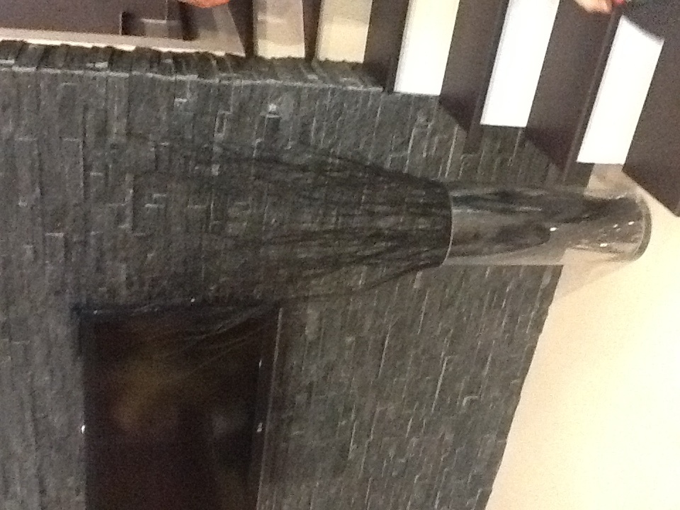 แต่ตอนช่างตัดหินแล้วมีฝุ่นเทาๆติดที่ผนัง เลยมองแล้วหินไม่ค่อยสวยๆ จริงๆต้องดำและเป็นประกาย