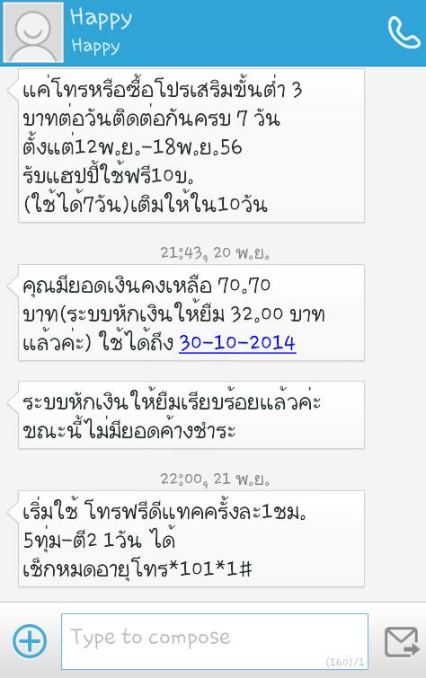 ปกติจะได้รับข้อความ เริ่มใช้โทรฟรีดีแทค 4 ทุ่ม- ตี 2 ตาด้วยเวลาที่ใช้งานได้