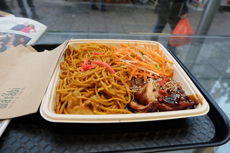 ผมเลือกกินนี่ครับ ยากิโซบะกับไก่ย่างเทอริยากิ รสชาติก็ใช้ได้ครับ ประมาณ2.5/5