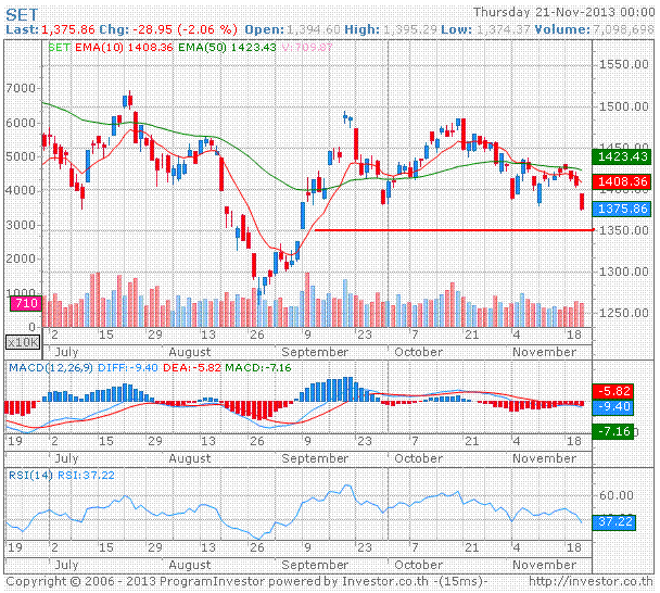 set ปิดวานนี้ 1375.86 แนวรับถัดไป 1350