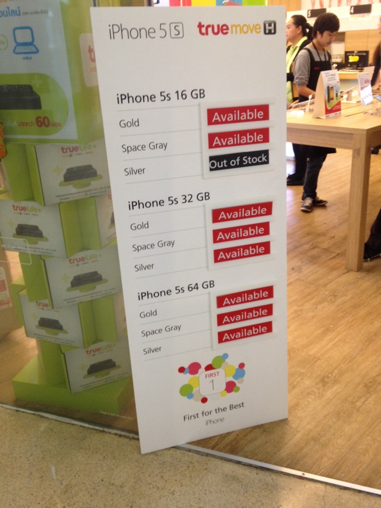 กำลังเล็ง iphone 5s 16 GB อยู่ค่ะ เพราะเห็นมีโปรโมชั่นลดราคาของค่ายมือถือ ซึ่งไปตามหา และโทรถามศูนย์กี่ที่ๆ ก็บอกไม่มีของ (โทรทุกศูนย์ใกล้บ้านเลยค่ะ ทั้ง true ais dtac) คำตอบเหมือนกันคือไม่มีของ ก็ถาม