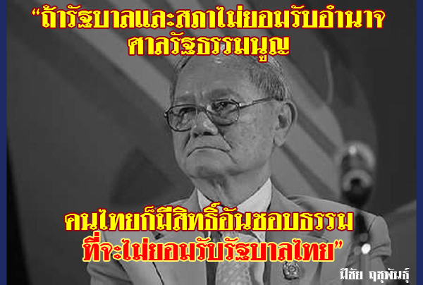 มีชัย ฤชุพันธ์ - ถ้ารัฐบาลและรัฐสภาไม่ยอมรับอำนาจศาลรัฐธรรมนูญ คนไทยก็มีสิทธิอันชอบธรรม ที่จะไม่ยอมรับรัฐบาลไทย'