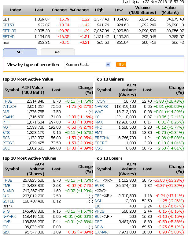 ### Graph Stock : Top 10 . Weekly 22.11.2013 ###