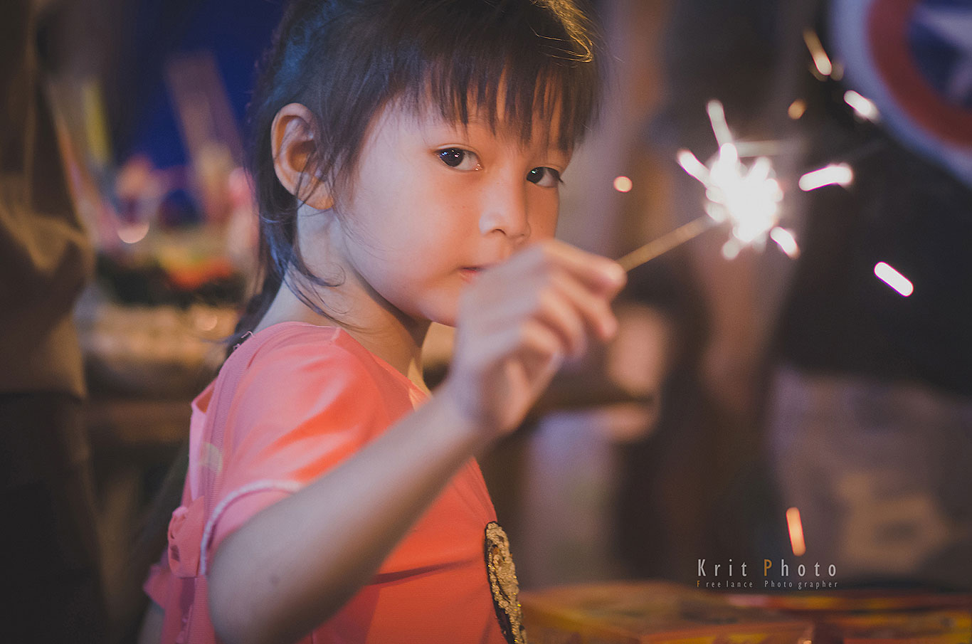 พร้อมกับจุดไฟ และให้น้องถือ