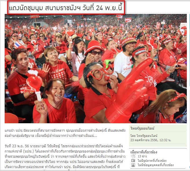 ด่วน...แดงนัดชุมนุม สนามราชมังฯวันที่ 24 พ.ย.นี้...นัดกระทันหัน วันแรกคนคงจะน้อย แต่ได้เริ่มสตาร์ตเครื่องแล้วครับพี่น้อง