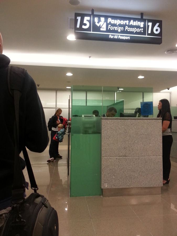 ลงจากเครื่องมาก็เดินตามเค้ามาเรื่อยๆ จนมาถึง ตม. ยืนต่อแถวสักพัก คุณเค้าไม่ถงไม่ถามเรื่องสุขภาพซ๊ากคำ