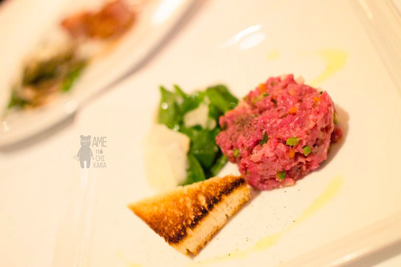 จานนี้เป็นของเพื่อน Steak Tartare หรือ ยำเนื้อดิบทำจากเนื้อวัวอิตาเลี่ยน