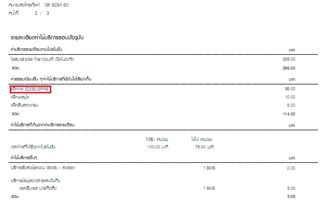 พอบิลมาปุ๊บ ก็เลยงงกับค่า EDGE/GPRS 99 บาท