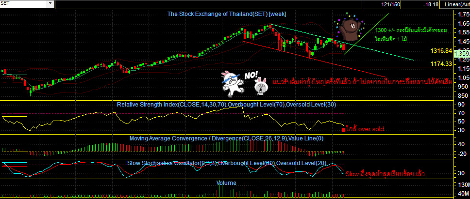 พอขึ้นไป ก็ค่อยไหลลง แบบ เด้งรีบาวด์ จาก over sold แบบวิกฤติต้มยำกุ้ง ส่วนจะลงจากอะไร เดี๋ยวมีเรื่องมาให้ลงเอง แต่ขออย่างหนึ่ง สิ้นเดือนนี้ ขอ 1300 ได้ไหม ไล่ราคาขึ้นไป นะจ้าวฮะ please!!