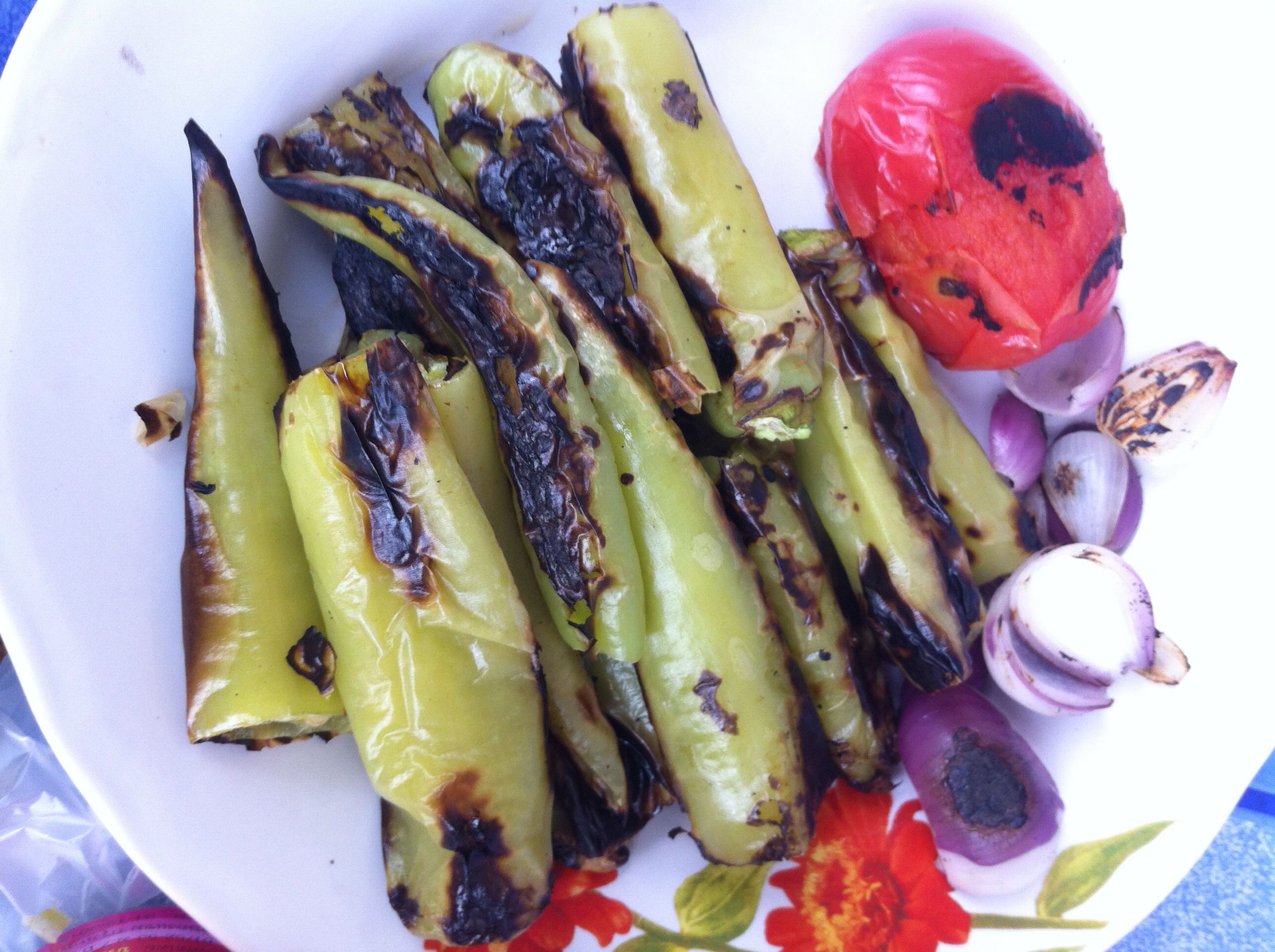 พริกกยวกสุกแล้ว จี่มะเขือเทศกับหอมแดงต่อเลย