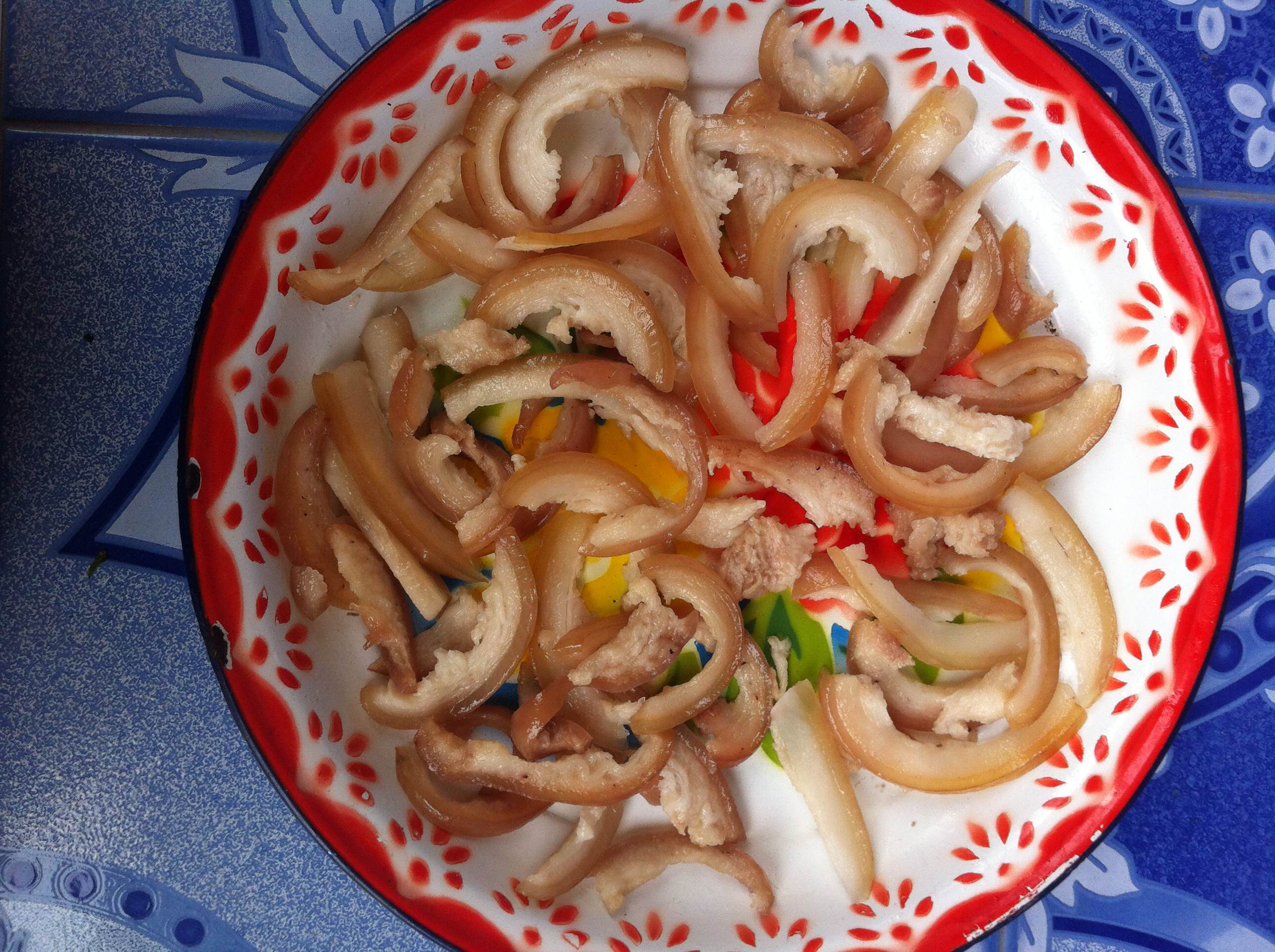 เหลือบไปเห็นในตู้ เจอหนังหมูต้มไว้รอทำแค๊ปหมูอยู่ด้วย
