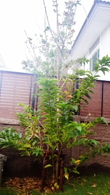 เพิ่งซื้อบ้านหลังใหม่ค่ะ มีเนื้อที่อยู่นิดหน่อยซึ่งทางโครงการเค้าทำสวนลงต้นไม้มาให้แล้ว เห็นต้นไม้ 2 ต้นนี้อยู่ในบ้าน ถามเซลล์น้องเค้าก็ไม่ทราบว่าคือต้นอะไร เลยคิดว่าต้องมาถามผู้รู้ในห้องนี้แล้วค่ะ ก่อนหน้านี้อยู่แต่ตึกแถวไม่เคยได้ปลูกต้นไม้เลย ตอนนี้บ้านมีพื้นที่แล้วตั้งใจอยากปลูกและเริ่มศึกษาต้นไม้ให้ดีหน่อย ^^