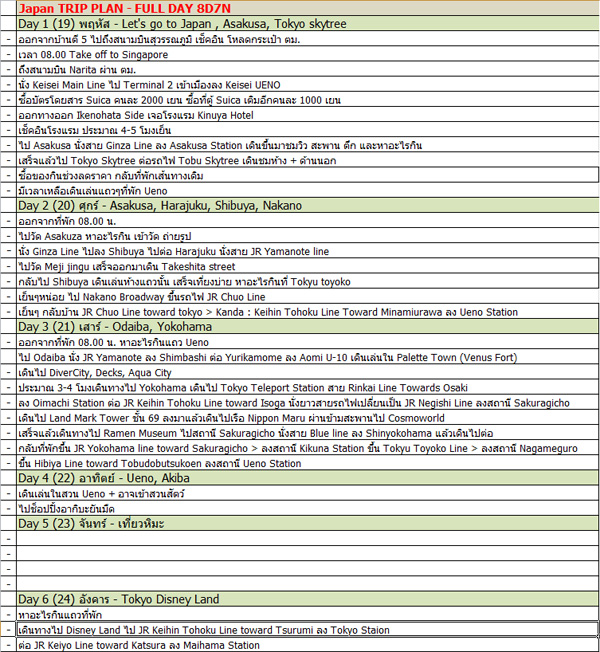 รบกวนตรวจสอบ Trip เที่ยว Tokyo 8 วัน 7 คืนหน่อยครับ + แนะที่เที่ยวหิมะให้ด้วยครับ