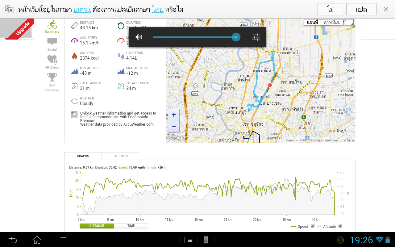 ผมถอย เมอไรด้า TFS 300D เข้าอาทิตย์ที่สองแล้ว หลังจากซ้อมมาหลายวัน วันนี้ลองปั่นทางไกล(สำหรับผม) ผมปั่นจากนอร์ทปาร์ค ออก โลคัลโลด วิ่งตรงไป ม.รังสิต แล้ว ทะลุหลัง ม.รังสิต ออกวัดนาวงศ์ วิ่งตรง ถ.สงประภา เข้าซอย วัดเวรุฬัน แล้วเข้าแจ้งวัฒนะ 14 เข้าศูนย์ราชการ ไปโลคัลโลด เข้านอร์ทปาร์ค รวมระยะทาง 42 กิโล ในช่วง โลคัลโลด น้าๆที่ขี่จักรยาน ตะโกนทักตลอดทาง สวัสดีครับ ผมปั่นอยู่คนเดียว น้าๆที่มาเป็นกลุ่มตะโกนจากด้านหลัง ไปด้วยกันหรือเปล่าครับ.