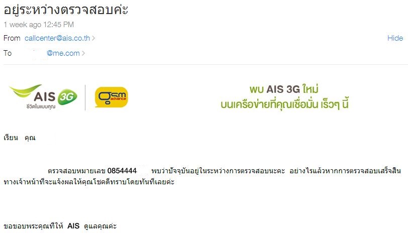 ผมอยากจะทราบคำตอบว่าทาง AIS สามารถ แก้ไขปัญหานี้ให้ผมได้หรือไม่ เพราะช่วงระยะเวลาที่ผ่านมา 1 อาทิตย์