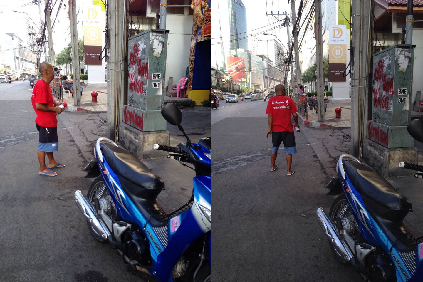 ฝนลงหนัก ชายพิการนั่งโดดเดี่ยวอยู่กลางถนนคนเดียว ไม่มีที่หลบฝน แต่น้ำใจคนเสื้อแดงของเราวิ่งไปกางร่มให้แล้วอยู่เป็นเพื่อน สุดซึ้งจริงๆครับกับภาพนี้