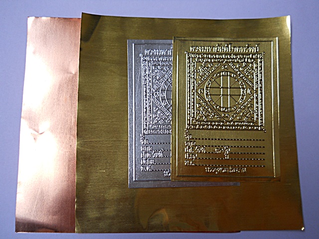 ขายแผ่นทองเหลือง/ทองแดง/เงิน/แผ่นดวงโภคทรัพย์ สำหรับหล่อพระ ขายตั้งแต่ 1 แผ่นขึ้นไป
