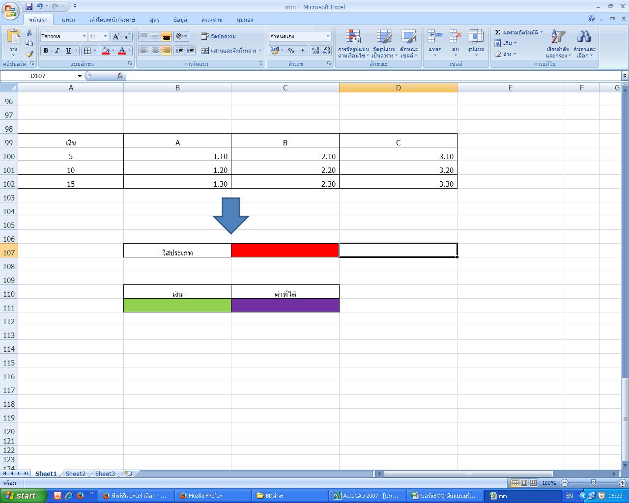จากนั้น ในช่องสีเขียวที่ใส่ค่าเงิน เราจะใส่ ค่า 5หรือ10หรือ15 แล้ว ค่าที่ได้ในช่องสีม่วง จะขึ้นตามข้อมูลแต่ละประเภท