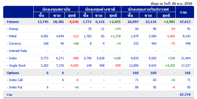 26/11/56 ต่างชาติ Long index future 168 สัญญา