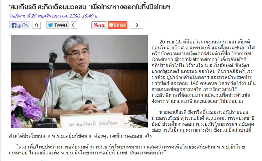 สมเกียรติ สะกิดมวลชน เพื่อไทย หางงอกไม่ทิ้งนิรโทษ!