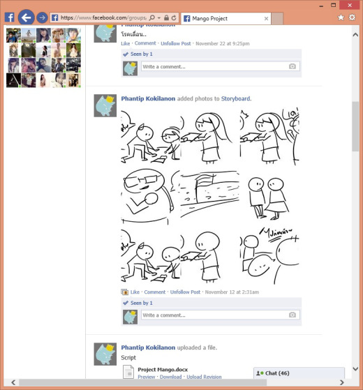 เริ่มด้วยการตั้งกลุ่มใน Facebook แล้วระดม Idea ร่างเนื้อเรื่อง + Storyboard คร่าวๆ