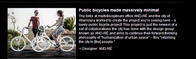 The folks at multidisciplinary office AND-RÉ and the city of Vilamoura worked to create the project you’re seeing here – a lovely public bicycle project! This project is just the newest of a set of collaborations the city has done with the design group known as AND-RÉ and aims to continue their forward-thinking philosophy of “humanization of urban space” – this “returning the city to [the] people.”
