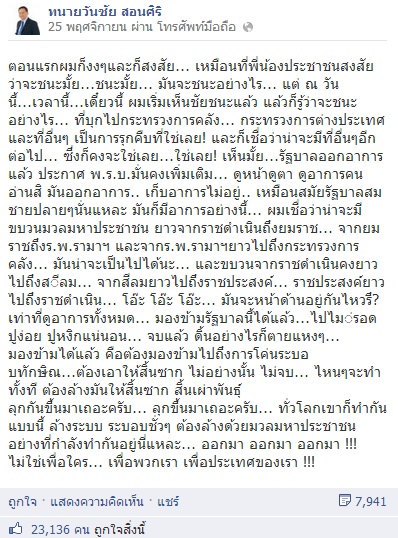 นี่เป็นเพียงข้อความบางส่วนเท่านั้น ใครอยากอ่านเพิ่มเติม ไปติดตามเองในเฟสบุกของท่านครับ