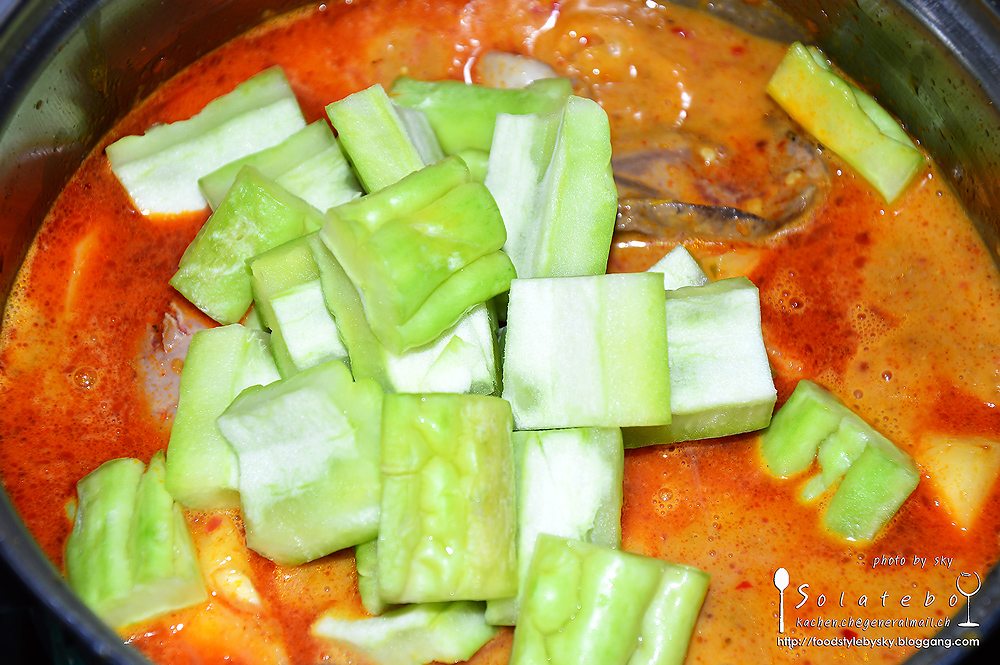 มะระ เหลือไม่มากก็ใส่ลงไป คิดว่าได้รสขมคงไม่มาก คงพอได้ละ เพราะเคยกินแกงกะทิมะระใส่ไก่ เอาใส่ลงไป