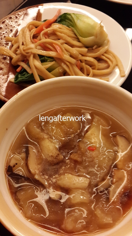 บรรยากาศในร้าน ที่เห็นโต๊ะนั่งกว้างดี เบาะหนานุ่ม (หลายร้านแคบมาก หันตัวแทบไม่ได้)มีมุมตักอาหารอุ่นร้อน เช่นข้าวผัดหยางเจา หมี่ผัดกวางตุ้งไต้หวัน กระเพาะปลา ของทอดแบบกินเล่น ไม่กล้าเปิดถ่าย อายพนักงาน ของอุ่นร้อนก็ใช้ได้ ดันชอบหมี่กับกระเพาะปลา ของกินเล่นก็โอเค