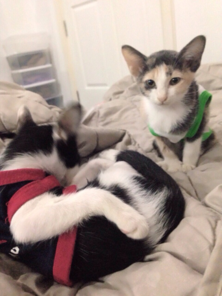 อันนี้ แมวคู่ที่สอง ฟ้ามุ่ย กับ ดาหลา ตอนนี้ 2 เดือนแล้วค่ะ