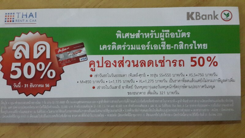 มีคูปองรถเช่า ของ thai rent a car ที่ใช้ร่วมกับบัตรเครดิต กสิกร -แอร์เอเชีย มาแจก2 ใบค่ะ