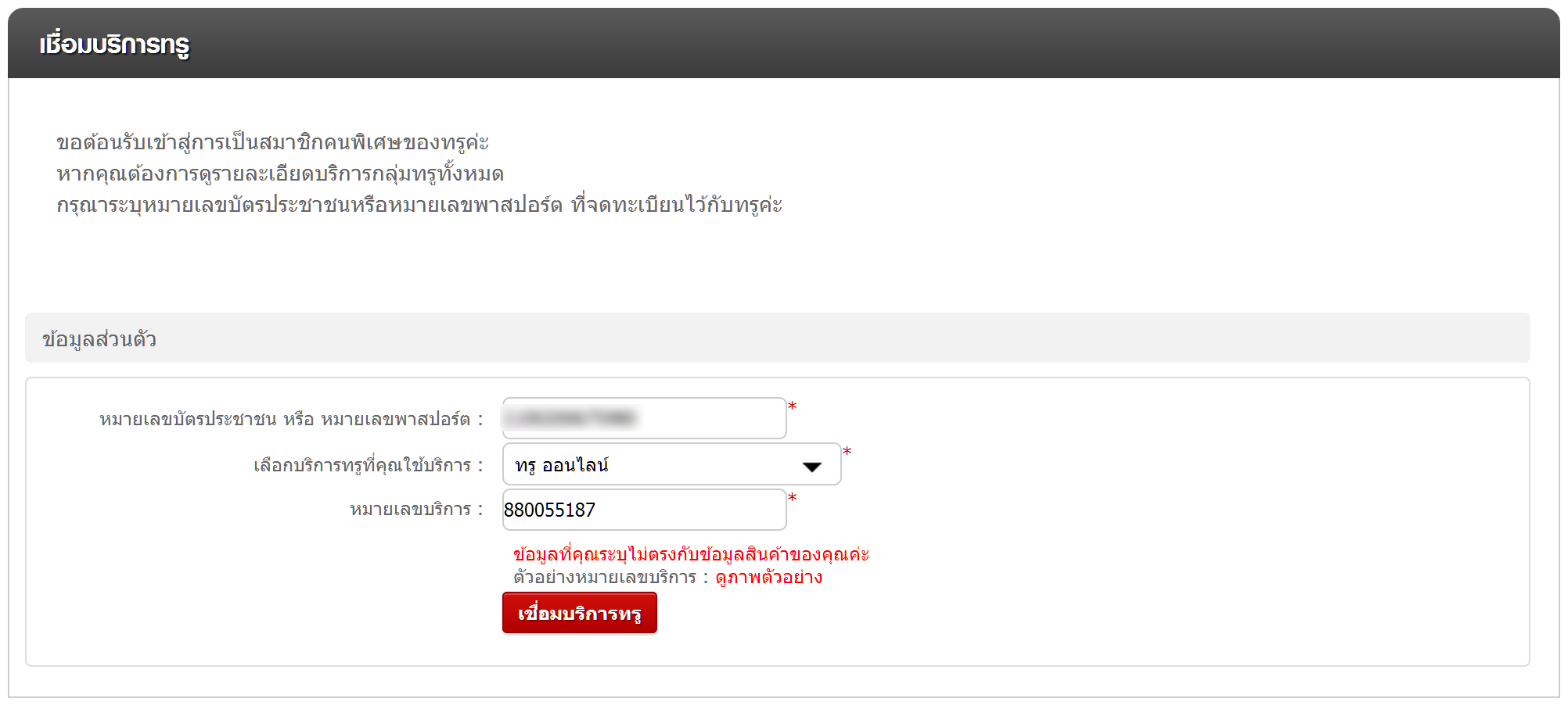 จะชำระค่าบริการออนไลน์ของทรู แต่ว่าเจอฟอร์มนี้ผมเลือก อะไรก็ขึ้นแต่ "ข้อมูลที่คุณระบุไม่ตรงกับข้อมูลสินค้าของคุณค่ะ"