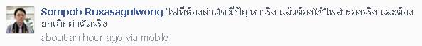 ขณะนี้ยังไม่ปักใจเชื่อว่า การตัดไฟที่โรงพยาบาลตำรวจ จะเป็นฝีมือของกลุ่มผู้ชุมนุมจริง ต้องมีการสืบสวน สอบสวนหาผู้กระทำผิดให้ได้ก่อน เพราะการตัดไฟที่โรงพยาบาลถือว่า เป็นการละเมิดสิทธิมนุษยชนและละเมิดกฎหมายอย่างร้ายแรง ขัดต่อหลักจริยธรรมความเป็นมนุษย์อย่างชัดเจน แต่อาจจะมีมือที่ 3 เข้ามาสร้างเหตุวุ่นวาย