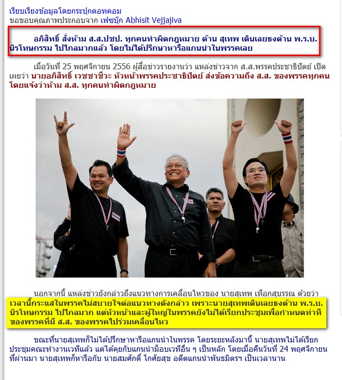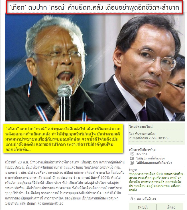 ไทยรัฐประจานพรรค ปชป.แตกดังโพละ..."เทือก"ตบปาก"กรณ์"ค้านยึด ก.คลัง เตือนอย่าพูดอีกชีวิตจะลำบาก...อย่าลืมมาร์คสิเมือก 55