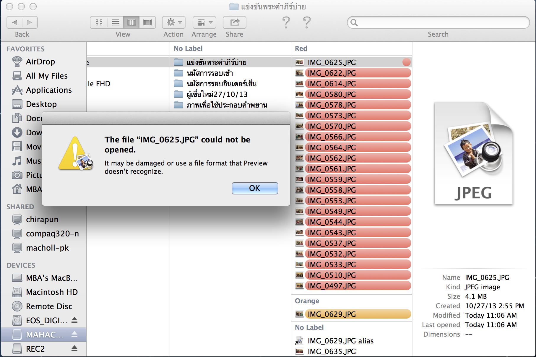 คือผมต้องการจะคัดเลือกรูป โดยการทำLabelแถบสีที่ไฟล์ เสร็จแล้ว พอกลับมาจะเปิดรูป กลับเปิดไม่ได้มีอาการเหมือนที่รูปแนบมาครับทำไงดี