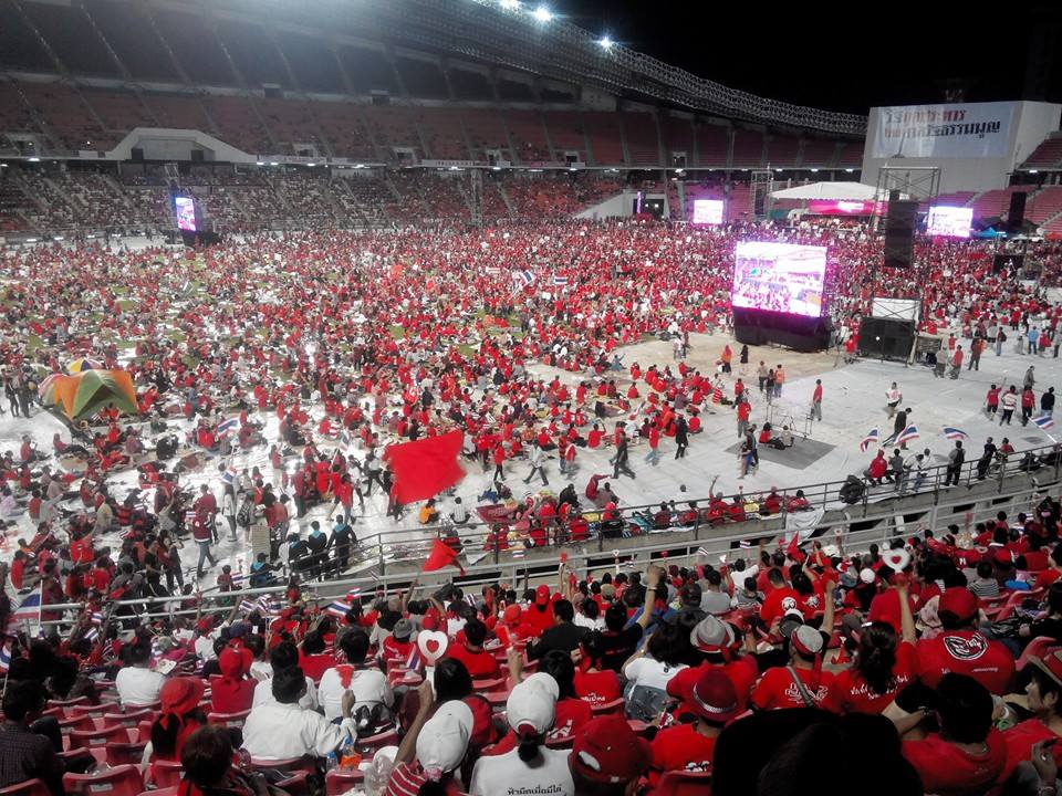 ถึงแม้ช่วงหัวค่ำ ม็อบนกหวีด แสดงพฤติกรรมถ่อย ทุบตีขัดขวางคนเสื้อแดง..... แต่ในที่สุดผู้รักประชาธิปไตยก็เดินทางเข้ามาภายในราชมังคลากีฬาสถานจนได้ ขณะนี้ มวลชนหนาแน่นจนแทบนั่งไม่ได้แล้วครับ ต้องยืนฟัง