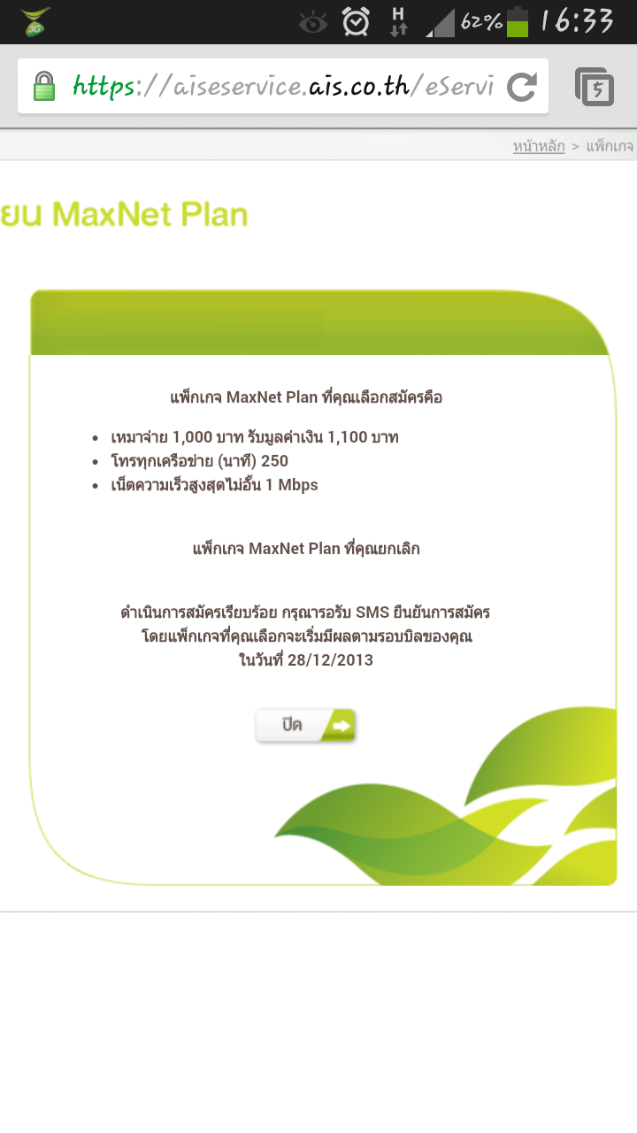 เบอร์รายเดือน AIS 3G 2100 ถูกระงับบริการ เพราะเกินวงเงินจากโปรโมชั่น MaxNet Plan