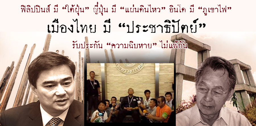 ยุบสภา จริงๆ ไม่เห็นด้วยเลย เพราะมันจะเป็นบรรทัดฐานที่ไม่ดี ต่อไป เสียงส่วนน้อยก็จะประท้วงตลอด ถ้าอยากเป็นรัฐบาล เศรษฐกิจก็จะแย่ ประเทศก็ไม่เดินหน้า วนเวียนอยู่แค่นี้ ปี 40 รธน. ประชาชน ปชป. ก็แพ้เลื