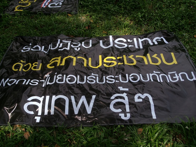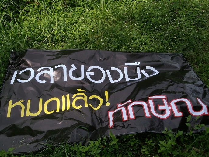 ป้ายของพวกมันติดหลายอัน หน้าศูนย์ราชการระยอง เพื่อนผม มันบอกเกลียดพรรคประชาวิบัติมากๆ มันแค้นที่กลุ่มโจร ทำลายป้ายนายกยิ่งลักษณ์ไปหลายอัน ตำรวจก็ไม่ทำอะไรเลย มันเลยเยาะเย้ย เข้าไปปลดป้ายของพวกกบฏ เอามาให้ผมดูหลายอัน ตำรวจทหารไม่จับเพราะไม่ใช่ป้ายของหลวง แต่เป็นป้ายของโจร