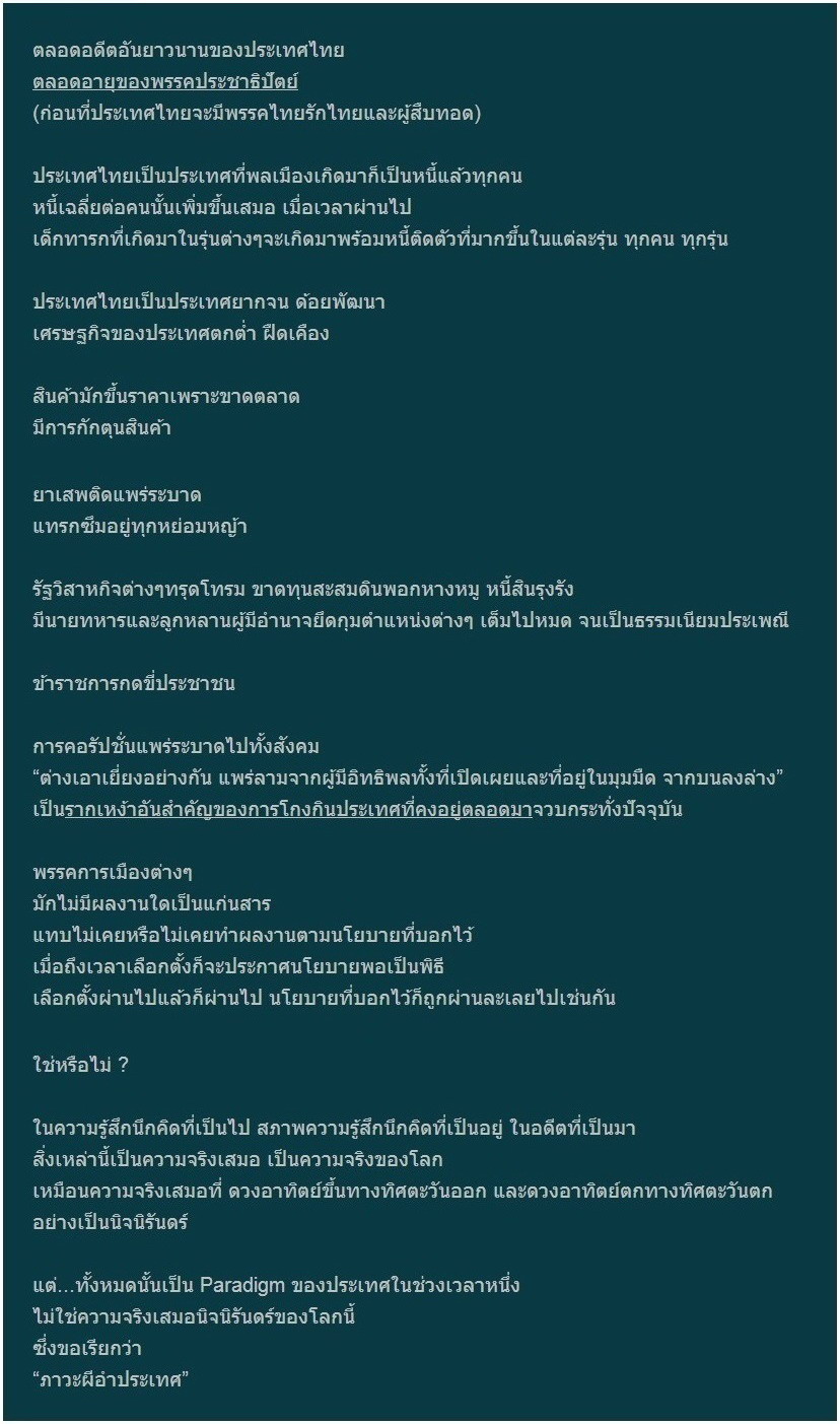 การกระทำของคนบางกลุ่ม บางพรรค บางอย่าง กำลังย่อยสลายตนเองในทุกองคาพยพ กลิ่นและโฉมหน้าตัวตนแท้จริงที่ถูกปกปิดซ่อนเร้น ของคนบางกลุ่ม บางพรรค บางอย่าง กำลังปรากฏและแสดงออกมาเรื่อยๆ
