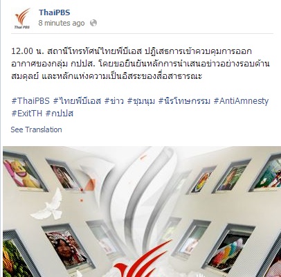 ช่อง 3 รายงานแล้วว่า ThaiPBS ขึ้นข้อความปฏิเสธข้อเรียกร้องของเทือก