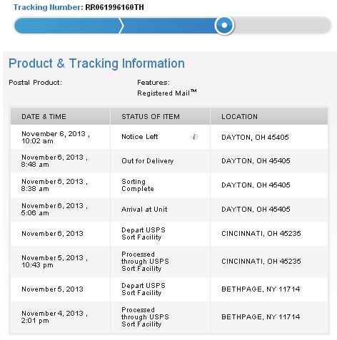ว่ายังไม่ได้รับของครับ ผมเลยเข้าไปเช็คใน USPS ก็ได้ข้อมูลตามรูปด้านล่างมาครับ