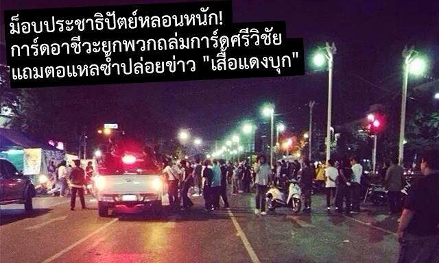 ผู้สื่อข่าวรายงานเพิ่มเติมว่าเหตุการณ์ดังกล่าวเมื่อคืนสร้างความเสื่อมเสียให้ม็อบประชาธิปัตย์อีกครั้ง จนสมาชิกพรรคหลายคนต้องรีบออกมา "โกหก" เพื่อแก้ข่าวว่า "เสื้อแดงบุกม็อบประชาธิปัตย์" ซึ่งชาวเน็ตต่างระบุตรงกันว่า เป็นการกระทำที่แย่มาก และที่สำคัญ ฝ่ายม็อบของพรรคประชาธิปัตย์ ทั้งการ์ดอาชีวะ และการ์ดคนใต้นักรบศรีวิชัย ต่างไม่กล้าเผยแพร่ข่าวนี้ และไม่กล้าไปแจ้งความที่สถานีตำรวจนางเลิ้ง