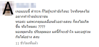 นับแต่การจัดการม็อบเสธ.อ้ายครั้้ง จนถึงการแก้ปัญหาในวันนี้ ขอชื่นชม วิธีการแก้ปัญหาด้วยความอดทนและสันติวิธี อยากฝากให้คิดกับคนที่จะปิดล้อมและบุกรุกสถานที่ราชการ ว่าอายุความ 10 ปี ซึ่งตำรวจไม่จำเป็นต้