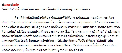 "เอกชัย" ปลื้มปีหน้ามีภาพยนตร์เรื่องใหม่ ขึ้นแท่นผู้กำกับเต็มตัว