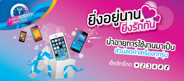 ลูกค้าดีแทค นำอายุการใช้งานมาเป็นส่วนลดค่าเครื่องมือถือและแท็บเล็ตทุกรุ่น เลยนะจ๊ะ ช่วงนี้ ipad Air กำลังเปิดตัว ก็สามารถนำมาเป็นส่วนลดได้นะค่ะ กดเช็คสิทธิ์ *234# (ไม่คิดค่าบริการ) สามารถรับสิทธิ์นี้ได้ภายใน 25 ธันวาคม 2556 นี้เท่านั้นนะค่ะ รีบๆหน่อยนะ