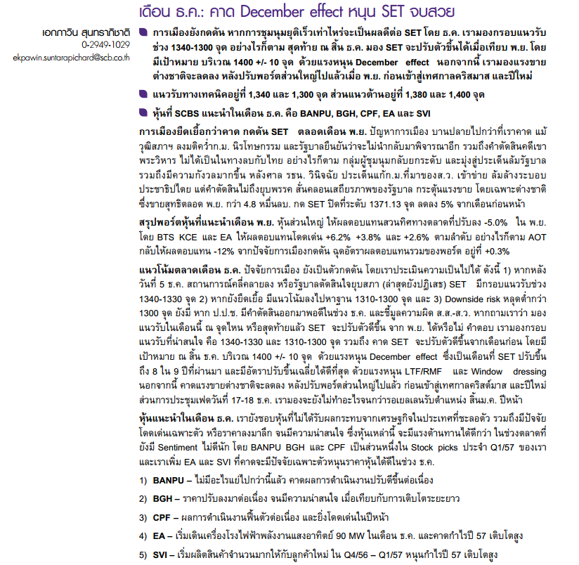 คาด December effect หนุน SET จบสวย