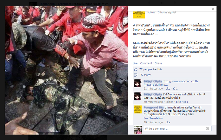 ผู้โพสอ้างว่านี่คือภาพเหตุการณ์ที่เกิดขึ้น ณ ม.ราม เมื่อวันก่อน