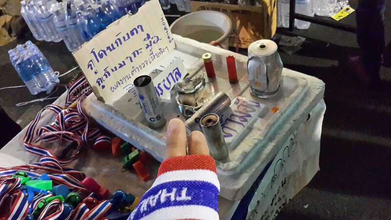 ในรูปแก๊ซน้ำตาที่มันปาใส่พวกเรา